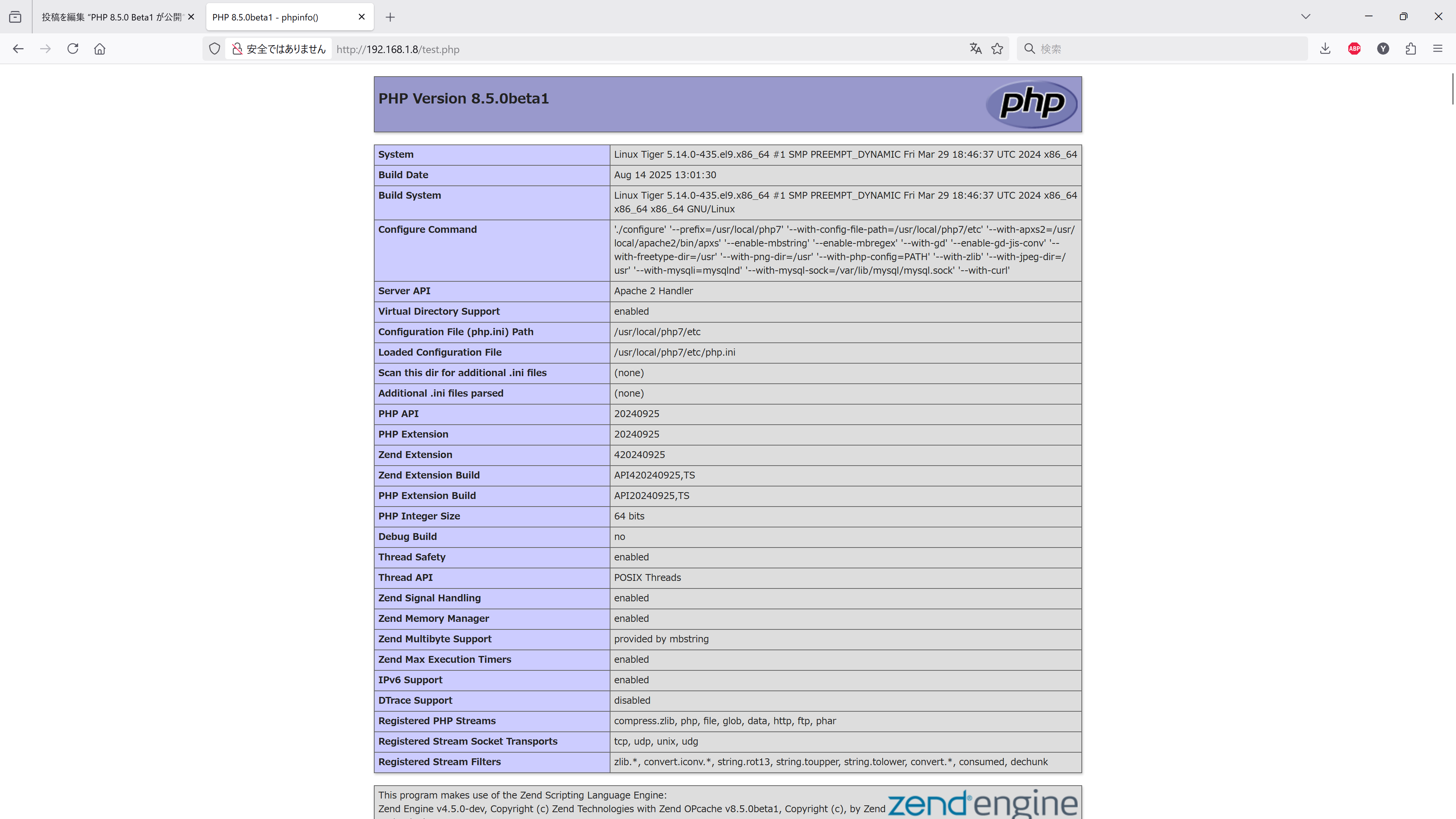 PHP 8.5.0 beta1 が公開