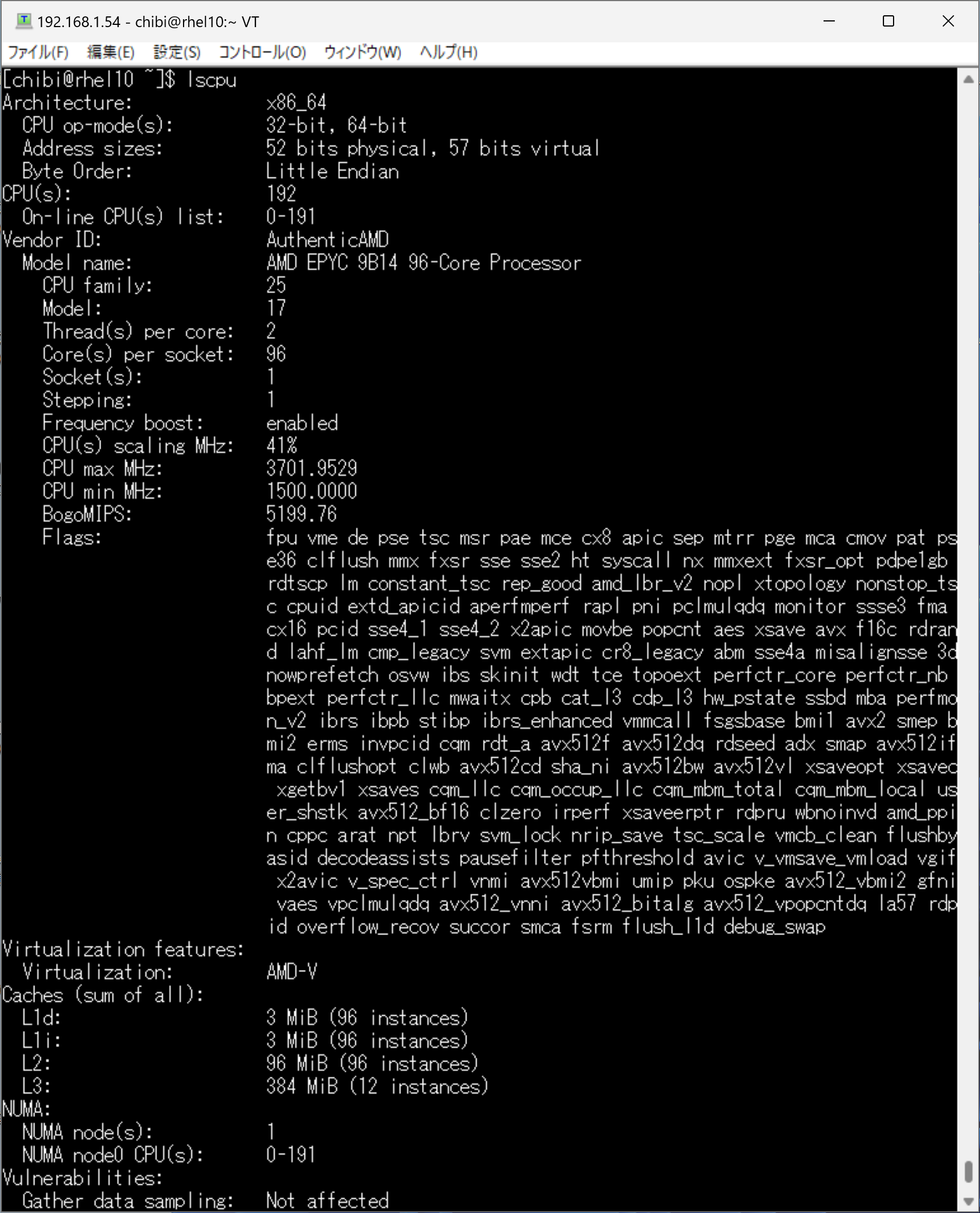 lscpu AMD EPYC 9B14 96-Core Processor 192Threads