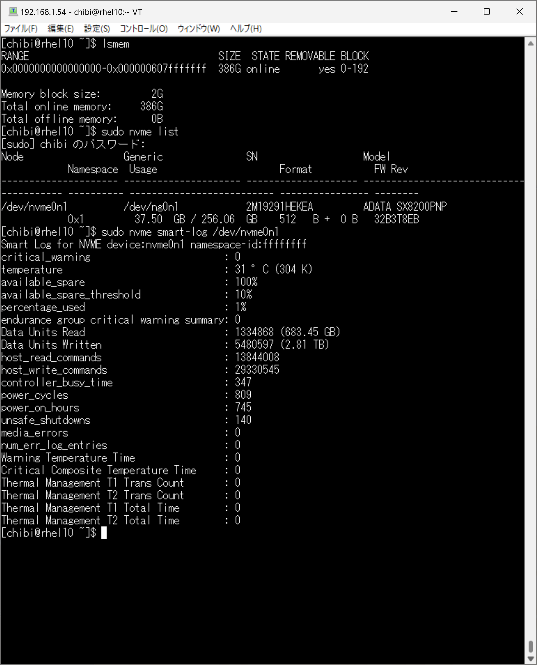 lsmem 384GB nvme list nvme-smart-log /dev/nvme0n1