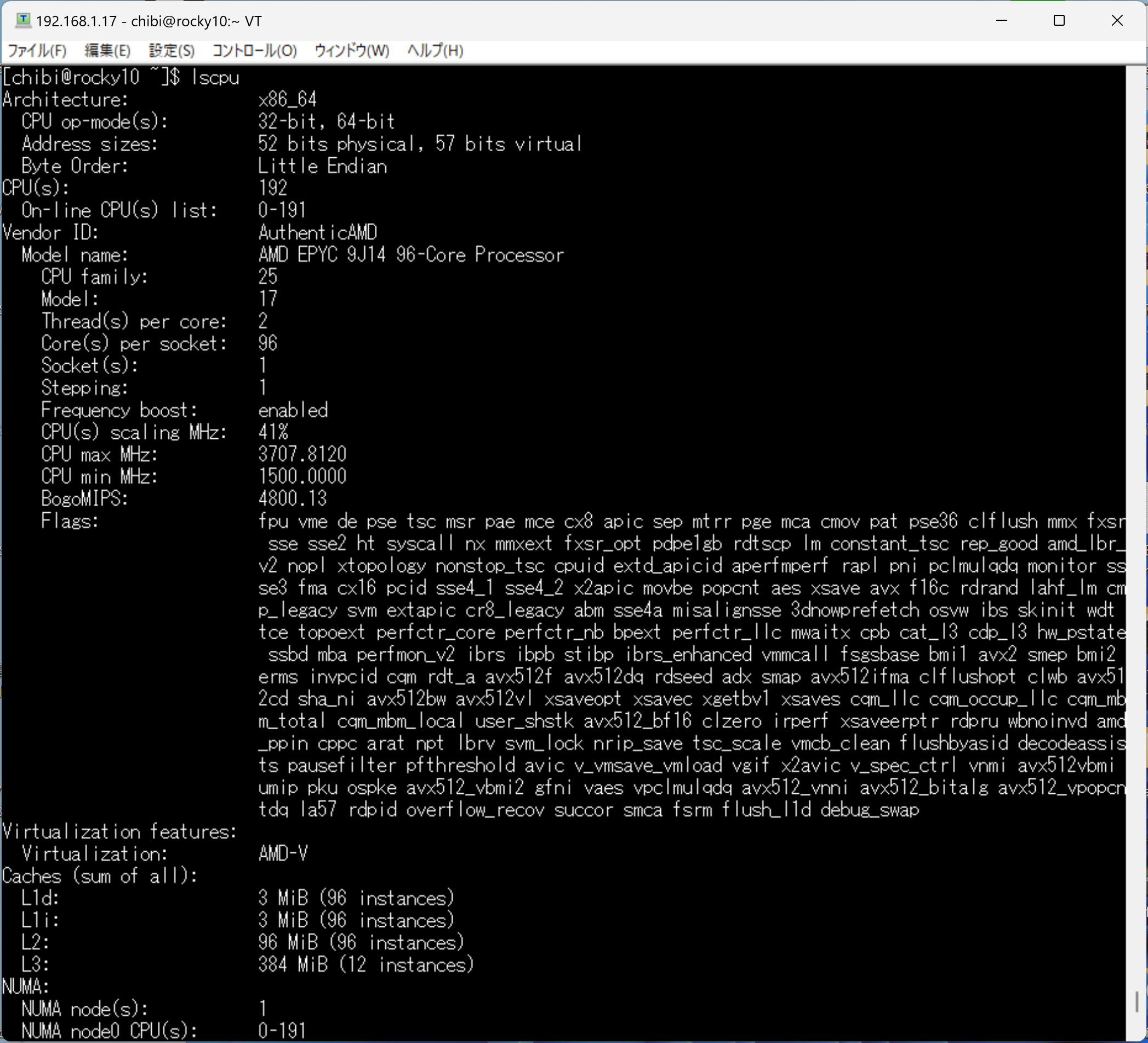 lscpu AMD EPYC 9J14 96-Core Processor 192Threads