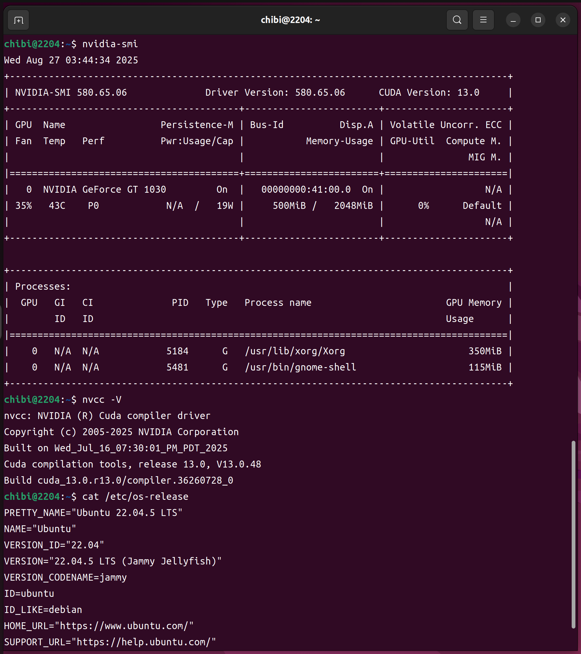 nvidia-smi nvcc -V cat /etc/os-release