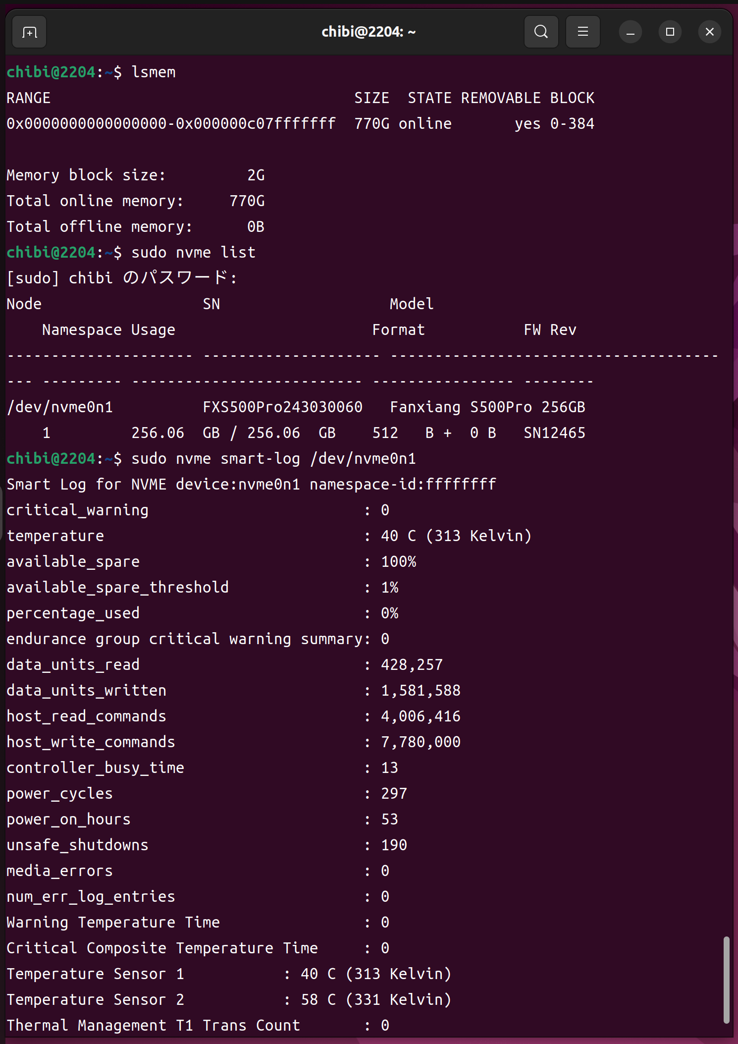 lsmem 768GB nvme list nvme-smart-log /dev/nvme0n1