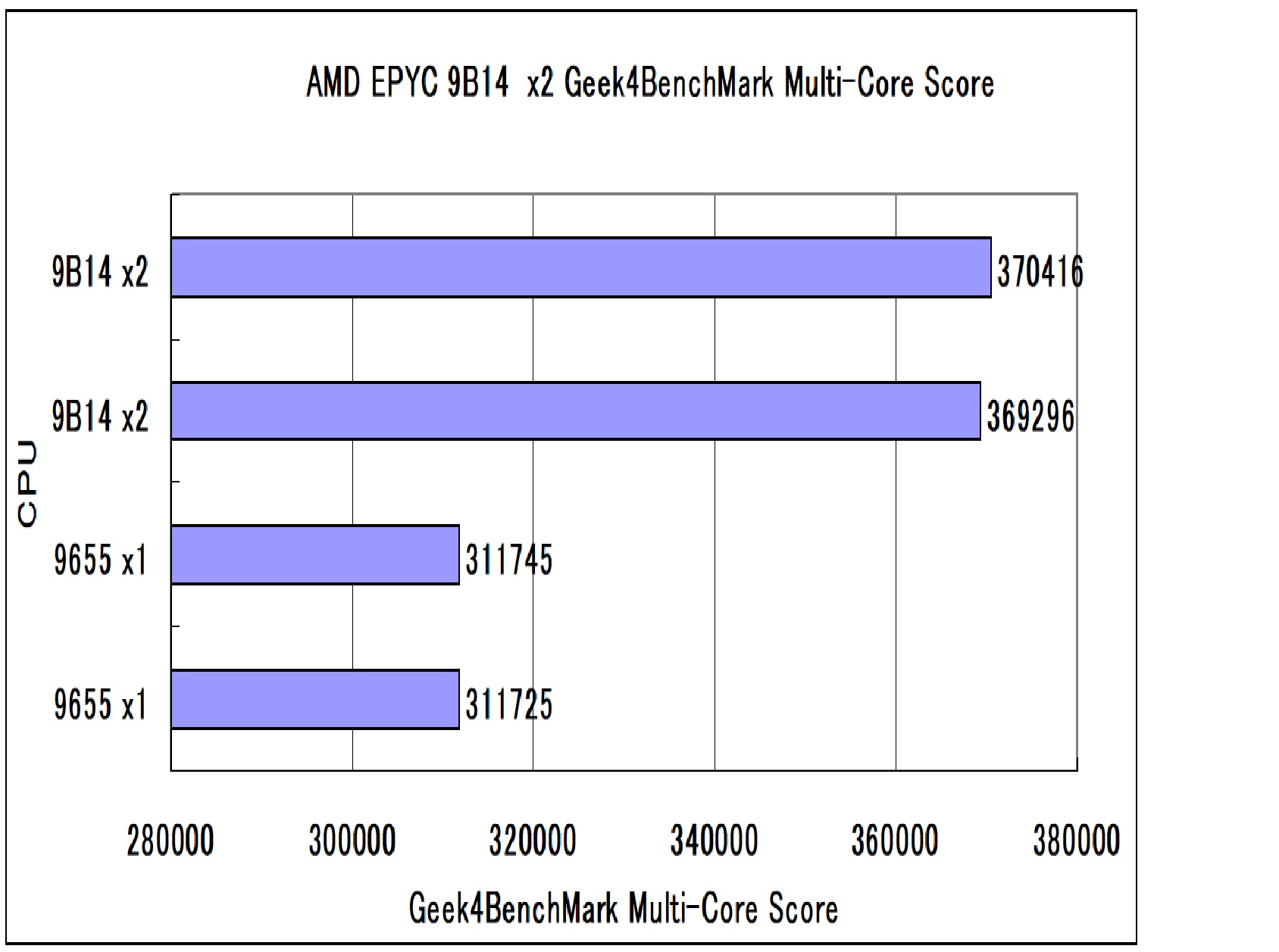 第4世代AMD EPYC 9B14 X2個 Multi-Core Score 370416