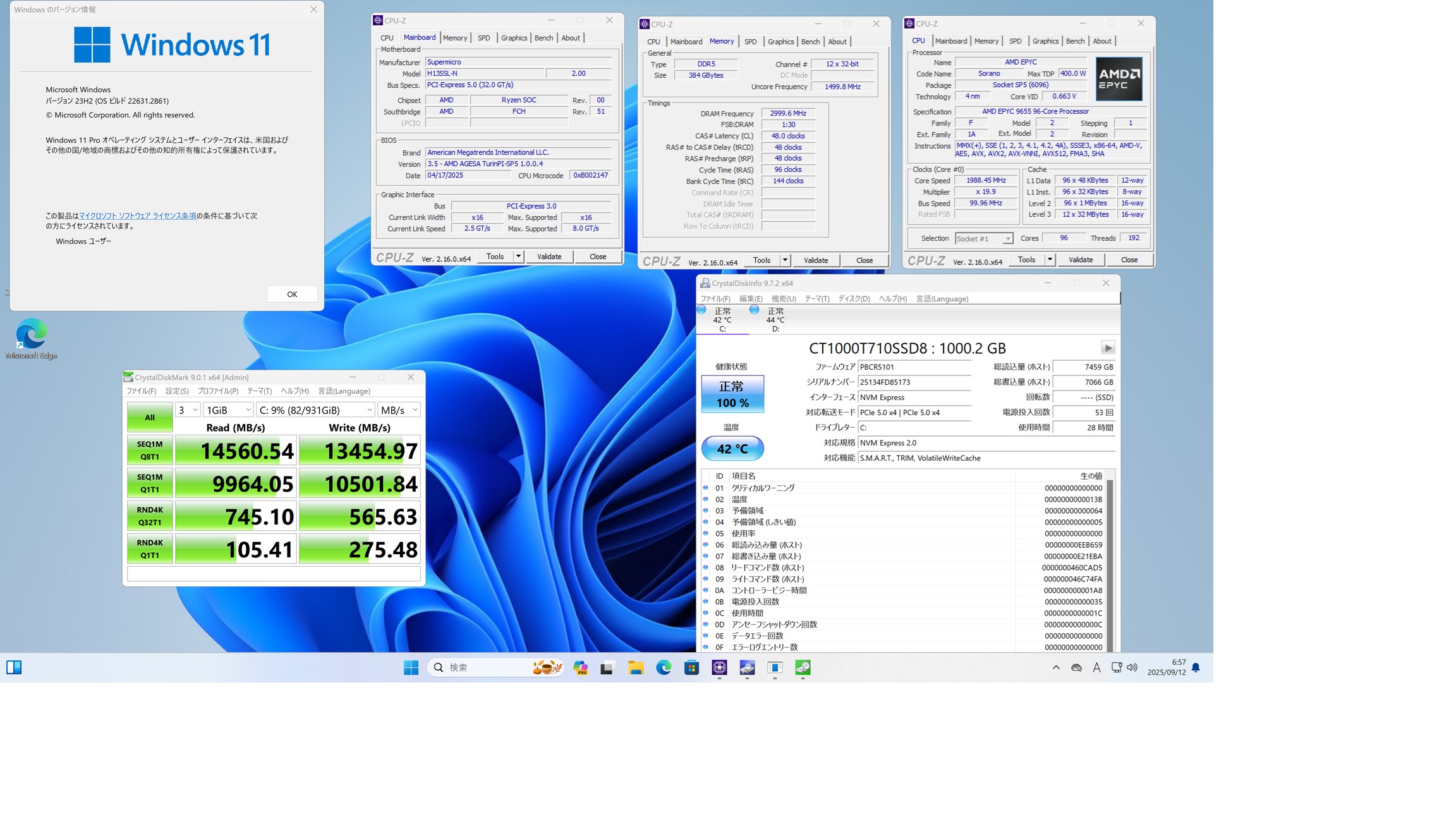- 第4世代 AMD EPYC 9754 128-Core x2 256-Core Processor 512Threads 576GB TITAN RTX Seagate FireCuda 530 ZP2000GM30023 2TBで構成された Windows 11 ProでDiskMarkを動作させてみた Read 7361.72MB/s Write 6880.03MB/s 公称値に近い値が出た に 丸山泰男 より