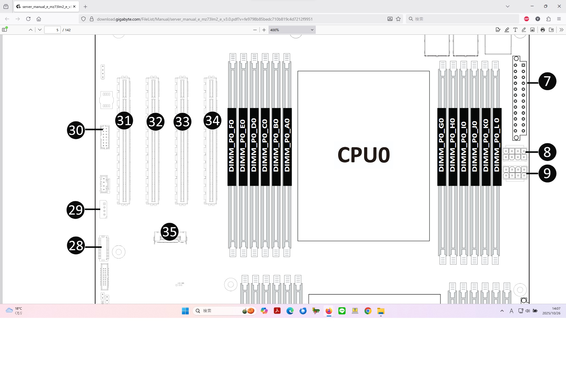 マザー Gigabyte MZ73-LM2 Rev. 3.x 外観 上側がCPU0