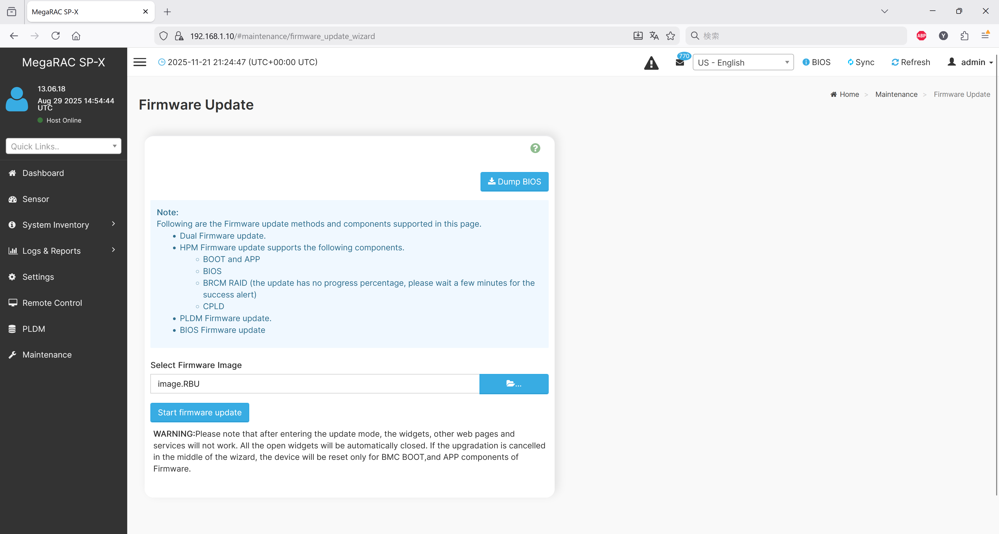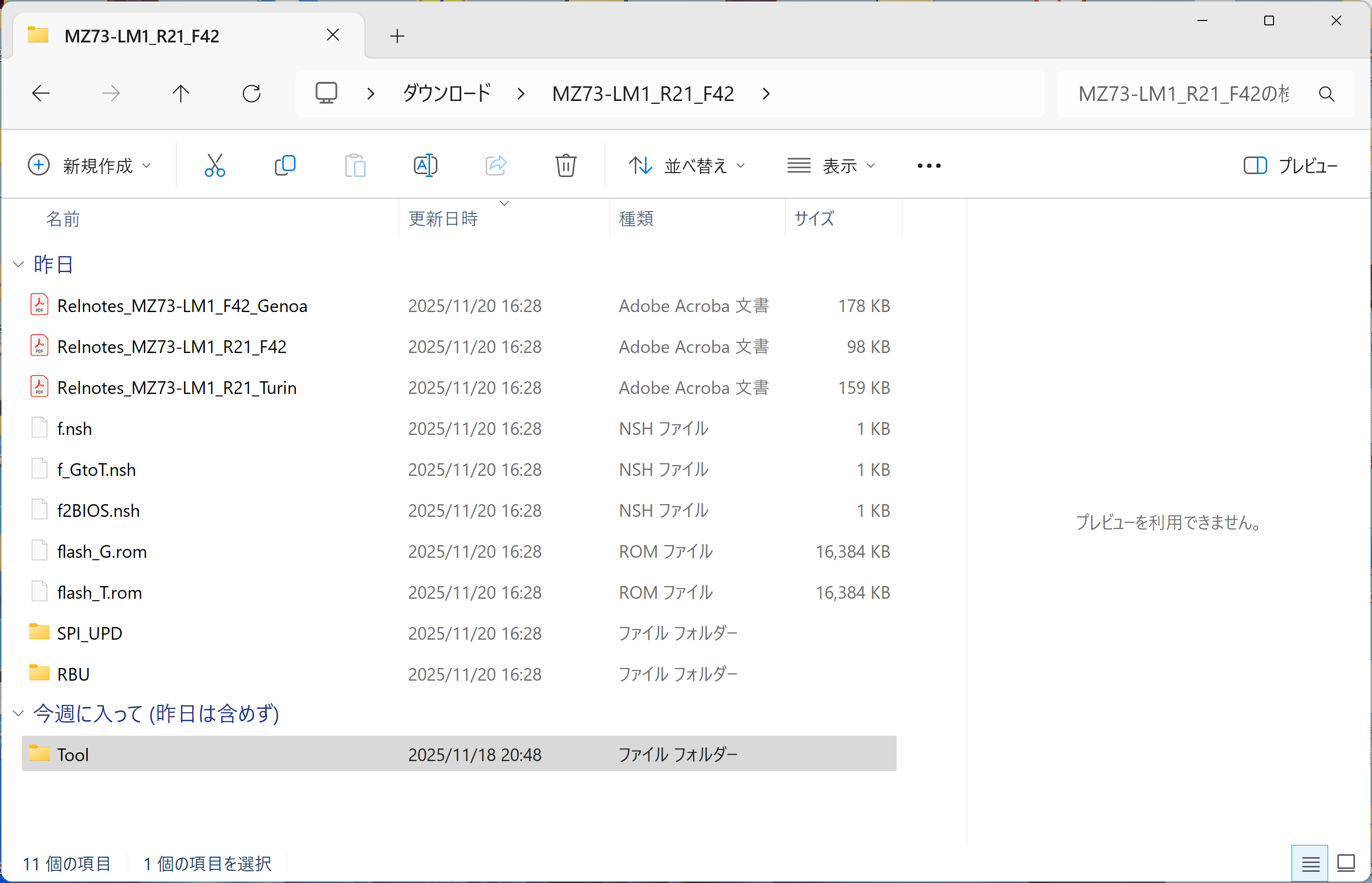 ここでBIOSデータの中からRBU(Remote BIOS Updateの略)ファイルの中の”image.RBU”を選択して更新で、BIOSのUPに成功しました。