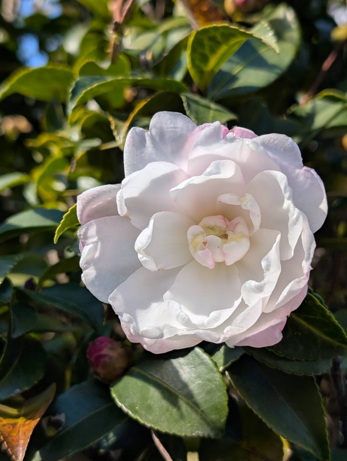 八重咲きですね。ほんわかとした淡い色は何とも言えない色気がある。椿より儚さを感じます。