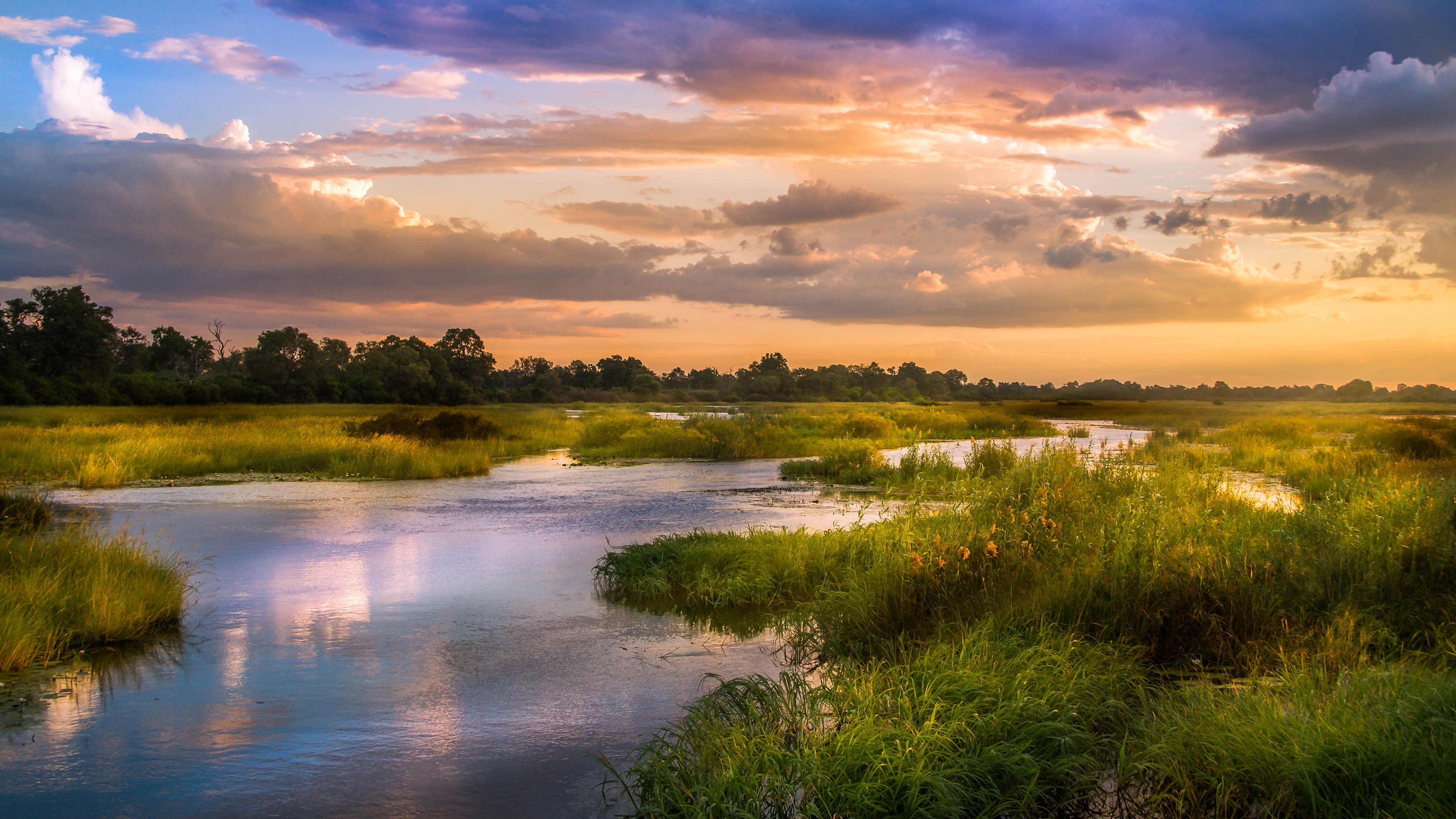 アンゴラからボツワナまで南東へ流れ、最終的に砂漠の中へと消えていく オカバンゴ川の流れ