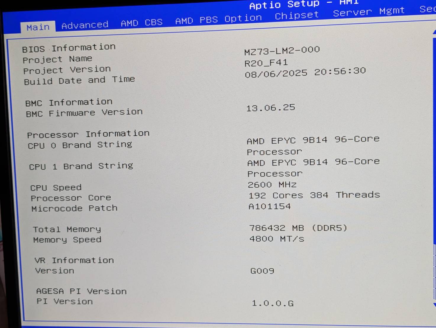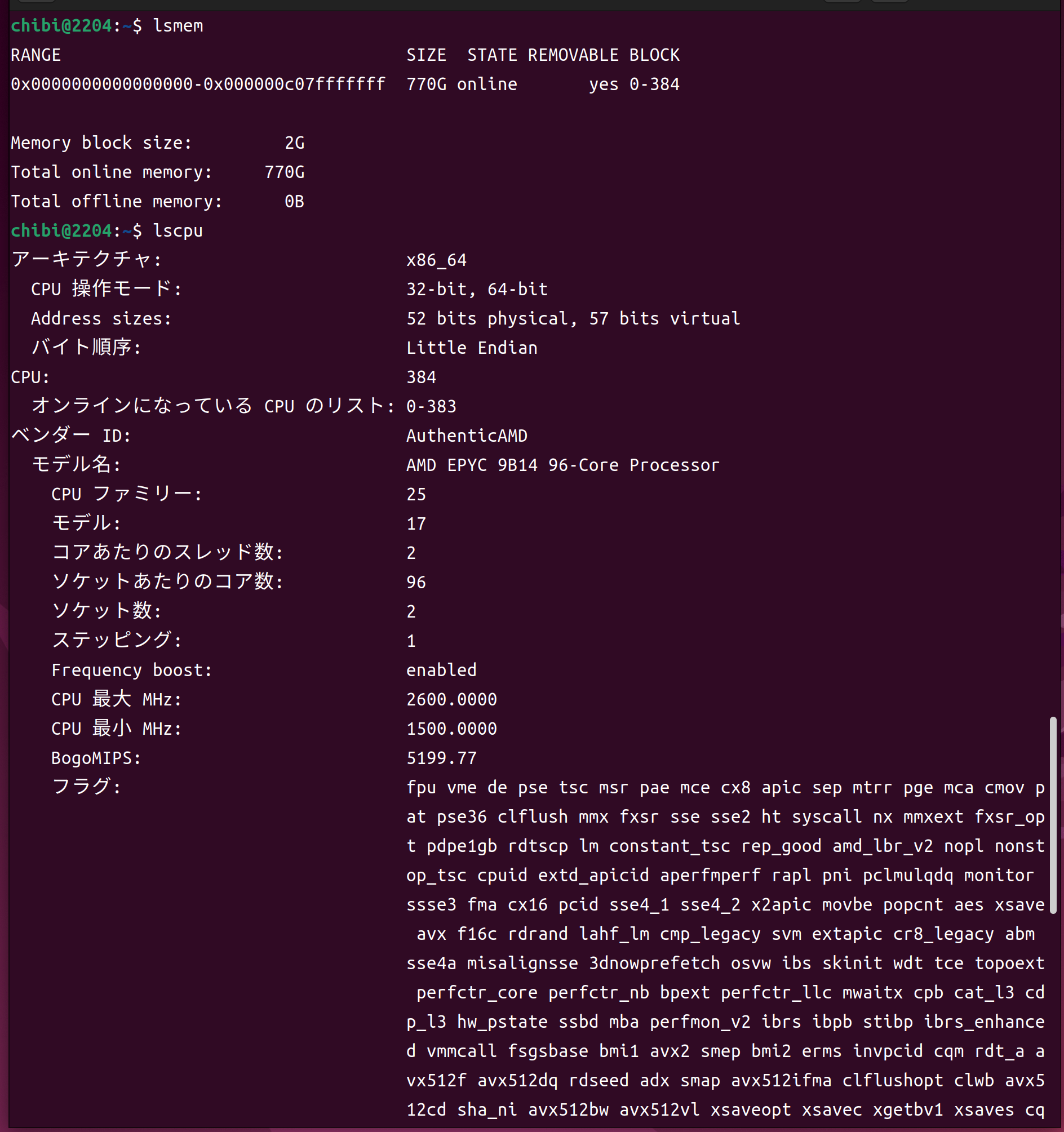 lsmem 768GB lscpu AMD EPYC 9B14 96-Core Processor x2 384Threads