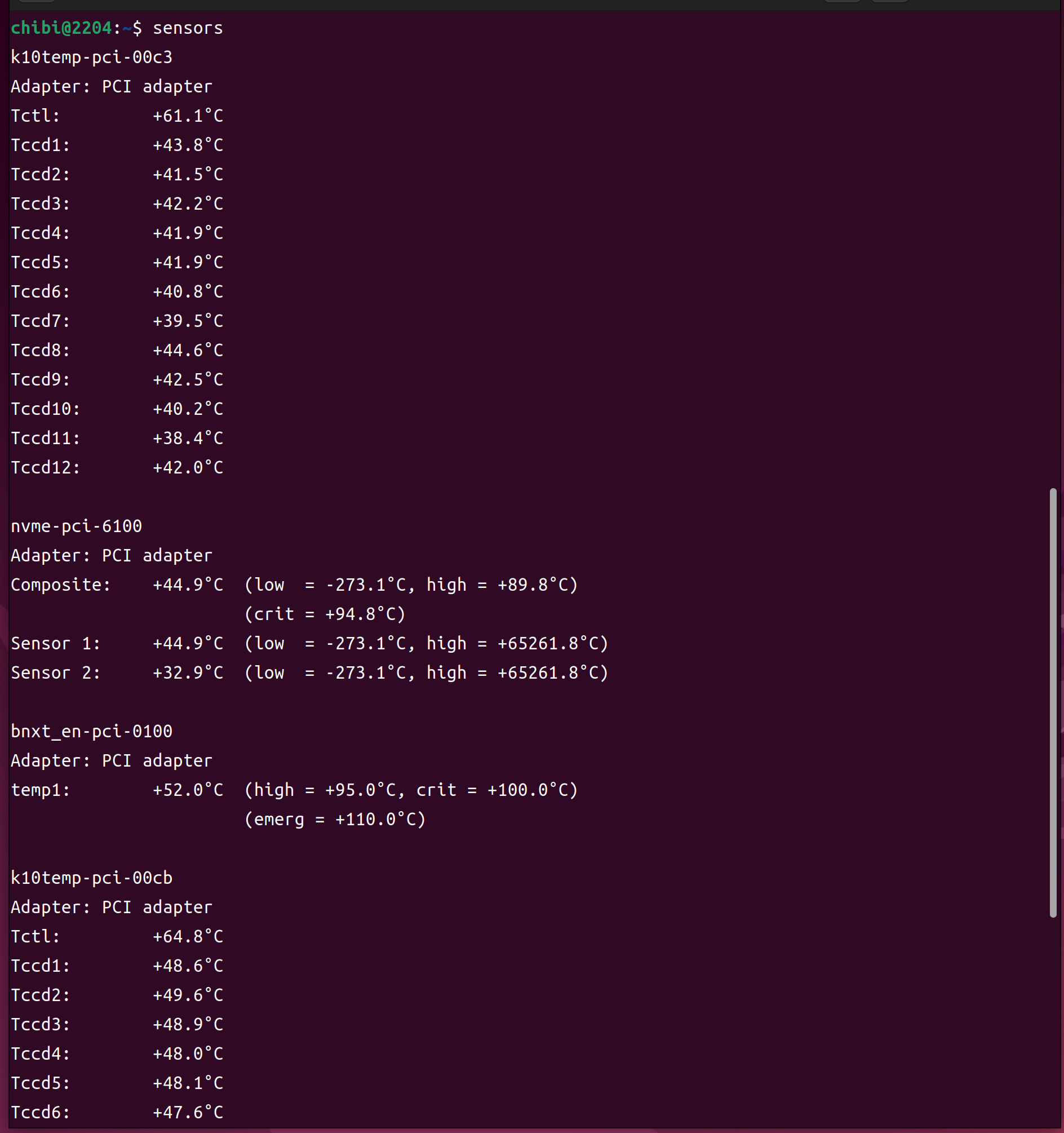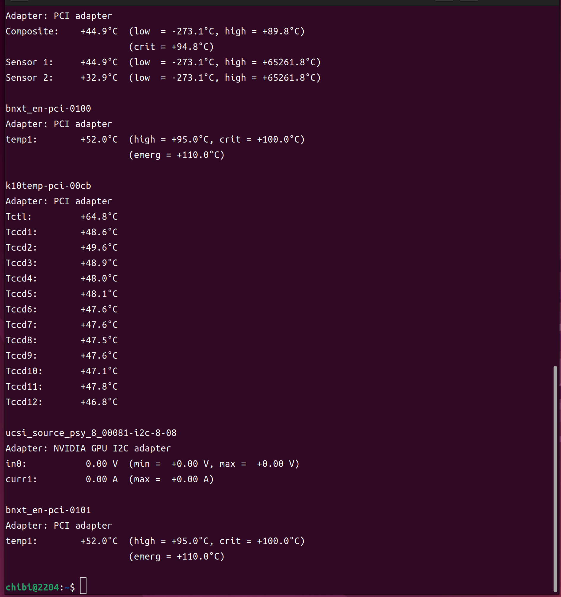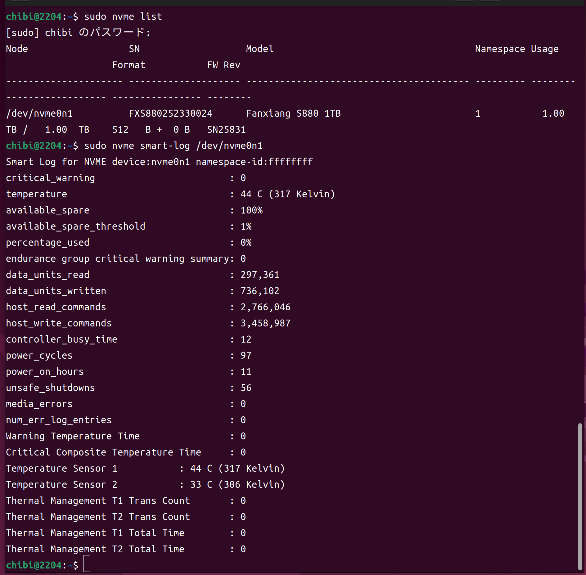 - 第4世代 AMD EPYC 9B14 96-Core Processor x2 384Threads 768GB TITAN RTX Fanxiang S880 1TBで構成された Ubuntu24.04.5 LTS へ CUDA-toolkit 12.6 をInstall して nvidia-smi nvcc -V cat /etc/os-release sensors nvme list nvme-smart-log /dev/nvme0n1 lsmem lscpuを設定した